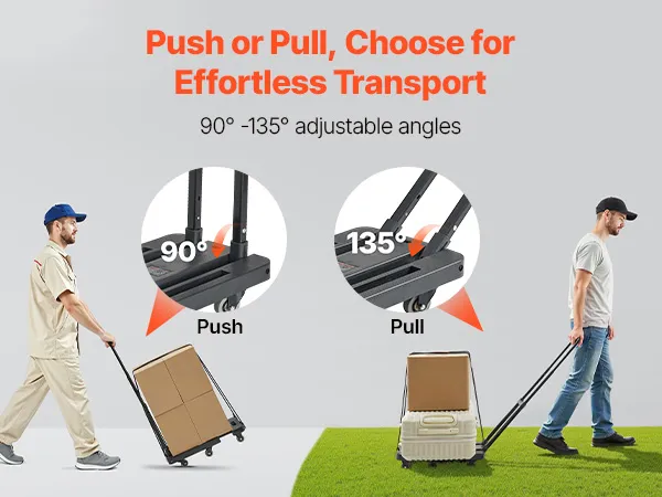 Dotato di angoli regolabili di 90° e 135°, questo carrello pieghevole offre flessibilità per diverse attività, facilitando lo spostamento di oggetti pesanti con meno sforzo.