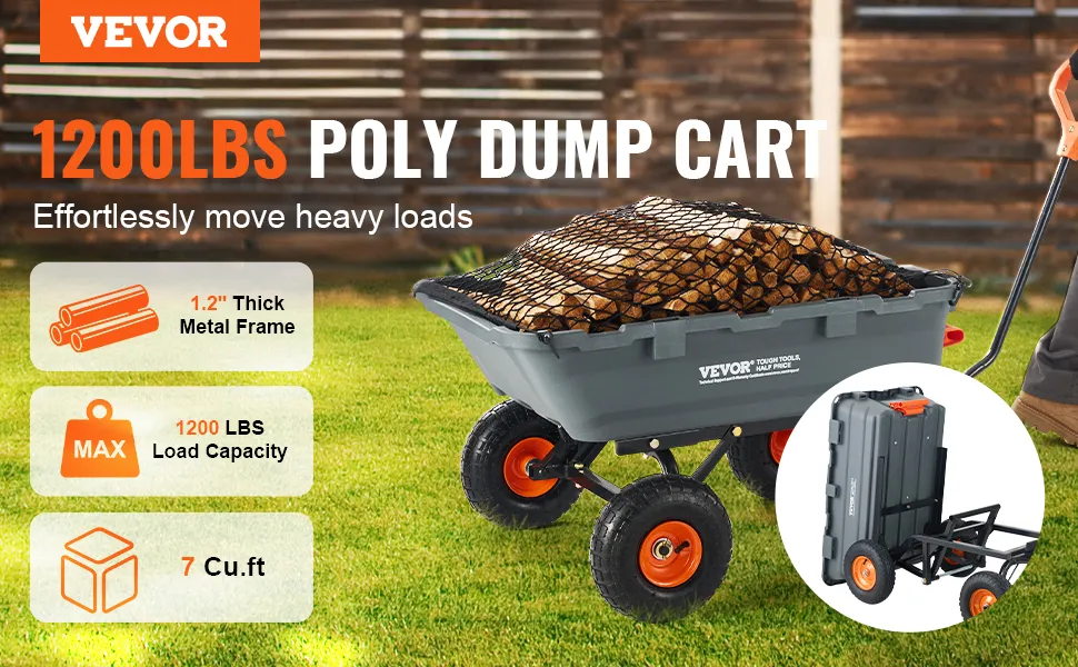Il carrello ribaltabile VEVOR ha una notevole capacità di 1200 libbre. Questo design robusto assicura che possa gestire facilmente carichi pesanti. Che tu lavori nell'edilizia o nel giardinaggio, questo carrello è all'altezza del compito. È costruito per gestire le esigenze dei lavori difficili. Con questa capacità, puoi spostare più materiale in meno viaggi. Non solo fa risparmiare tempo, ma riduce anche lo sforzo fisico. La struttura robusta fornisce prestazioni durature. Quindi, il tuo carrello sarà uno strumento affidabile per qualsiasi progetto pesante. Puoi fidarti che porterà a termine il lavoro in modo efficiente ed efficace.