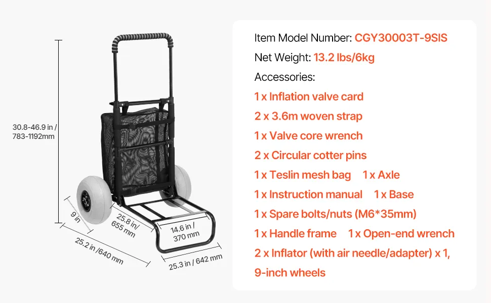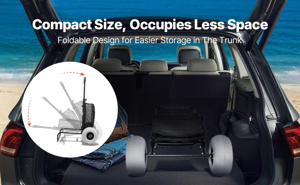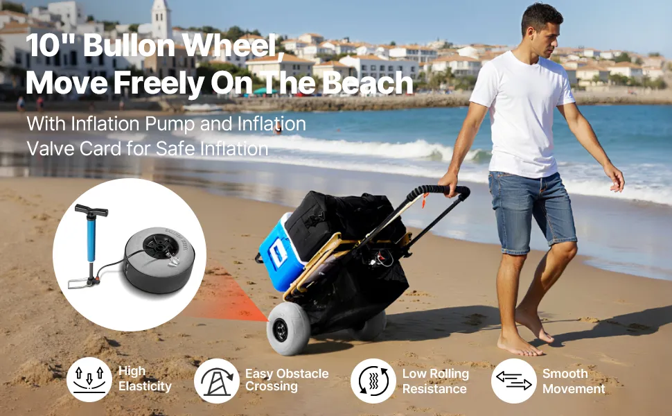 Le ruote a palloncino da 9" sono una caratteristica meravigliosa. Rendono facile la navigazione sulla sabbia spessa. Queste ruote forniscono un'eccellente trazione. Puoi attraversare la sabbia senza sforzo e senza incontrare ostacoli. Questo rende le tue gite in spiaggia più comode. Puoi trasportare più oggetti senza problemi. La ruota a palloncino distribuisce anche il peso in modo uniforme. Mantiene il carrello stabile. Con il minimo sforzo, lo fai muovere. Le ruote funzionano perfettamente per la sabbia più morbida. Il loro movimento fluido assicura un movimento fluido. I bagnanti troveranno questa caratteristica molto utile per le loro esigenze di trasporto.