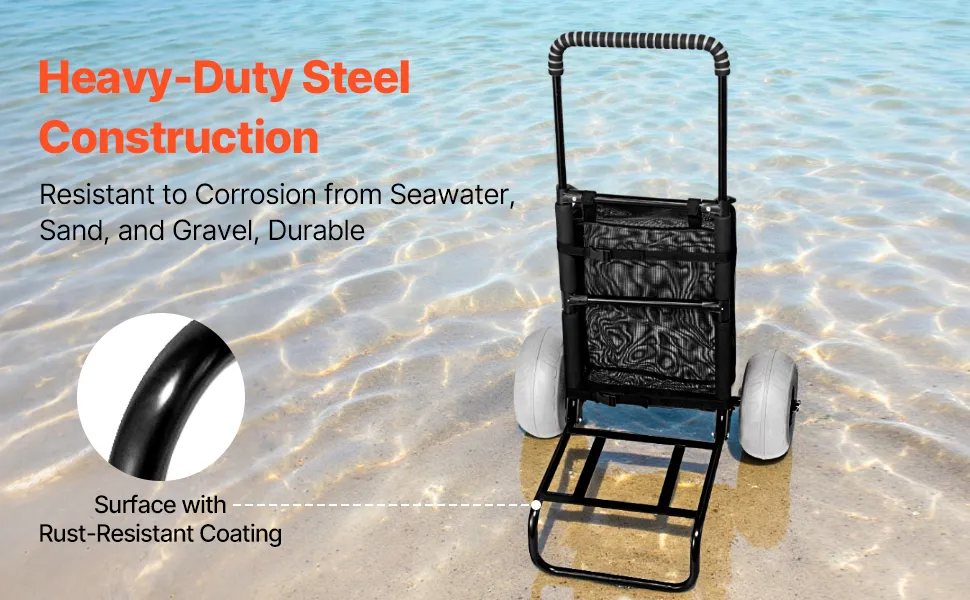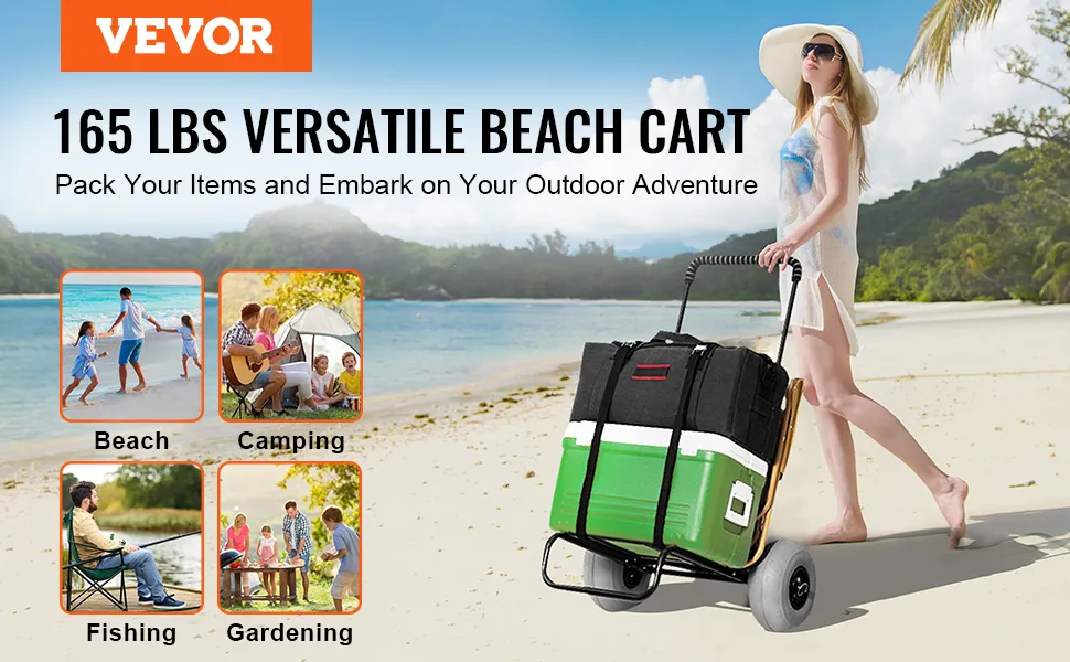 Il carrello da spiaggia VEVOR con grandi ruote per la sabbia è perfetto per il surf morbido ed è fatto per durare. Ha una struttura robusta. I materiali sono resistenti e affidabili. Ciò garantisce che il carrello possa gestire carichi pesanti. Una struttura robusta lo rende adatto a condizioni difficili. È perfetto per trasportare sedie, ghiacciaie e altro. Le ruote e il telaio resistenti forniscono stabilità. Puoi fidarti di questo carrello per trasportare la tua attrezzatura da spiaggia. Lo abbiamo progettato per resistere agli elementi. Questi includono sole, sabbia e acqua salata. Il design durevole garantisce un uso duraturo. Quindi, è una scelta affidabile per frequenti gite in spiaggia.