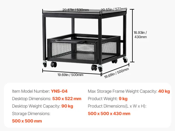 È dotato di una robusta struttura in metallo e legno E1 e può sostenere fino a 90 kg nella parte superiore e fino a 40 kg nei cassetti. Grazie alle ruote girevoli a 360° e bloccabili, questo tavolo mini frigo è facile da spostare.