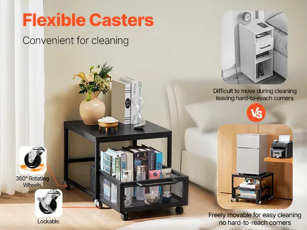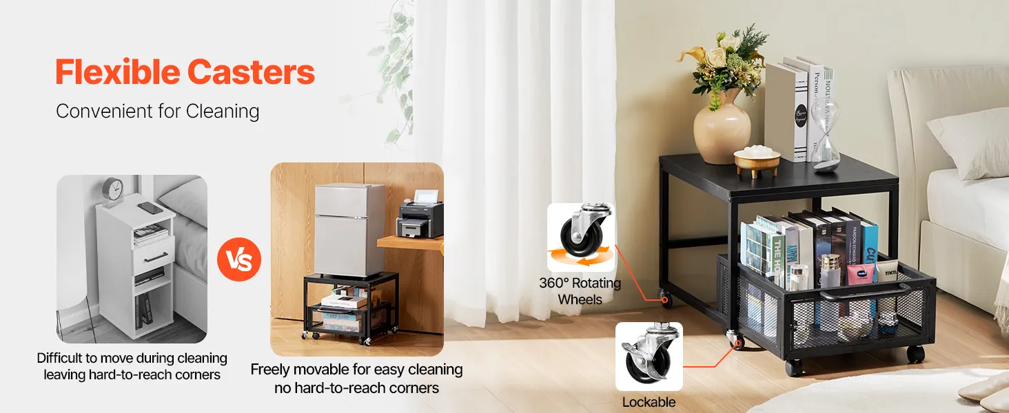Mobilità senza sforzo: con le sue 4 ruote piroettanti, questo ripiano mobile per mini frigorifero può essere facilmente spostato in qualsiasi posizione desiderata. Una volta posizionato, blocca semplicemente le ruote per fissarlo e assicurarti che rimanga in posizione durante l'uso