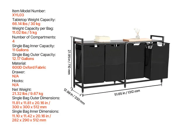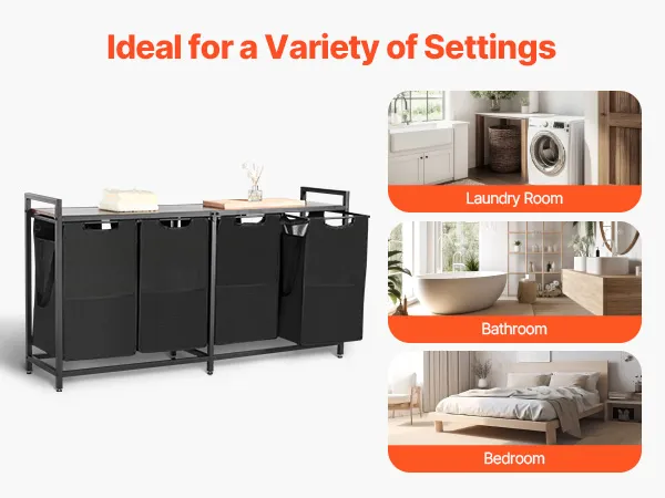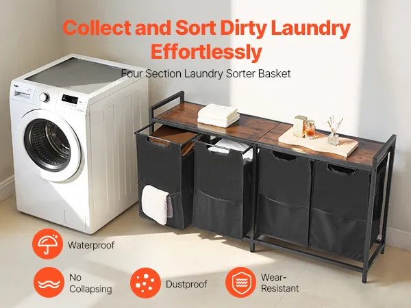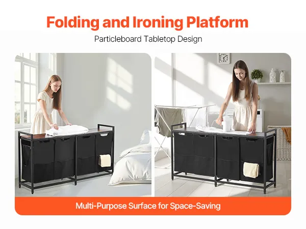 VEVOR Cesto Portabiancheria con Piano in Legno, Contenitore per Biancheria con 4 Sacchi Estensibili Tessuto Oxford 600D Struttura in Metallo, Cesto Smistamento Biancheria per Vestiti Sporchi