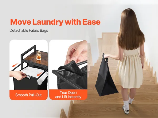 I sacchetti rimovibili con un design scorrevole e maniglie consentono al cesto portabiancheria di trasportare i vestiti alla lavatrice in una sola volta, risparmiando tempo e fatica.