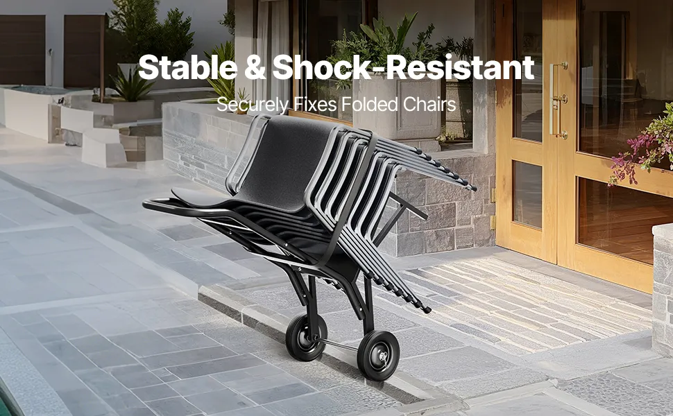 Robusto e durevole: realizzato in acciaio rinforzato e dotato di saldatura multi-punto, il nostro carrello porta sedie è eccezionalmente robusto e stabile, garantendo sicurezza e affidabilità anche quando è completamente carico.