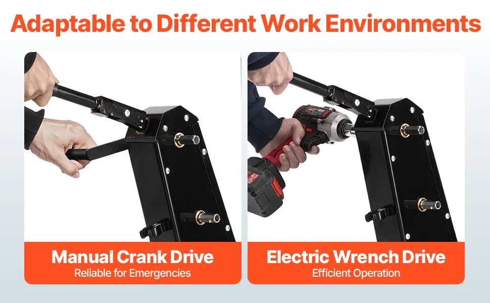 Opzioni di doppia trazione: questo carrello di traino per rimorchi è dotato sia di manovella manuale che di chiave elettrica. La trazione manuale è ideale per le emergenze, mentre la chiave elettrica rende il traino più efficiente. Passa facilmente da una modalità all'altra per adattarti a vari ambienti di lavoro, semplificando e velocizzando le tue attività di traino