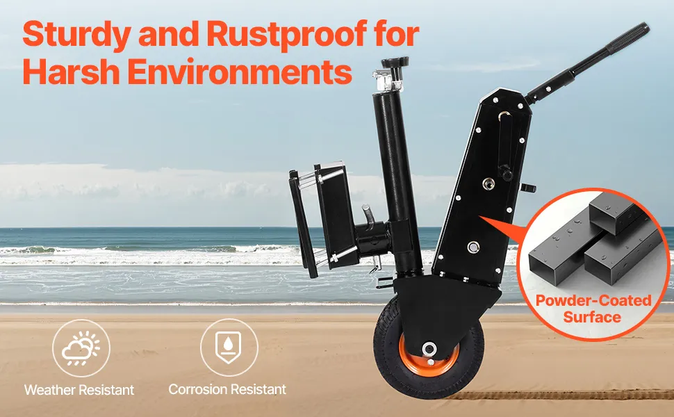 Elevata capacità di carico: questo carrello per rimorchio supporta fino a 500 libbre. Realizzato in acciaio al carbonio ad alta resistenza con finitura verniciata a polvere, è robusto, durevole e resistente alla ruggine e alla corrosione. Può gestire vari rimorchi e barche pesanti, rendendo il tuo trasloco senza sforzo