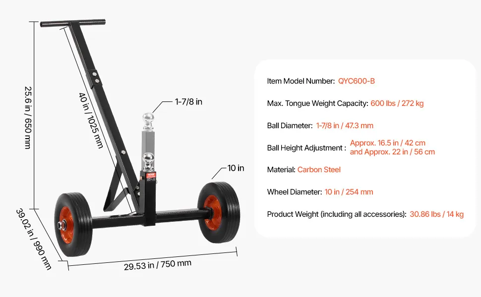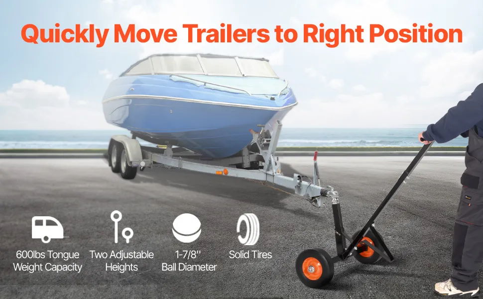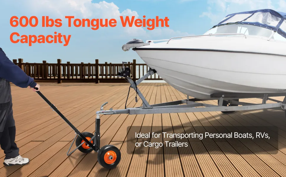 Questo carrello per rimorchio ha una capacità di carico della barra di traino di 600 libbre, che può spostare facilmente rimorchi pesanti in una breve distanza. La sfera di attacco universale è regolabile in altezza per adattarsi a diversi tipi di rimorchi.