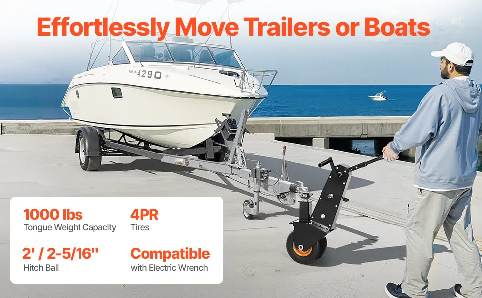 Questo carrello per rimorchi vanta una capacità di carico massima di 1000 libbre, garantendo un traino robusto e flessibile per camper, barche e altri veicoli ricreativi, rendendo la gestione del rimorchio semplice e agevole.