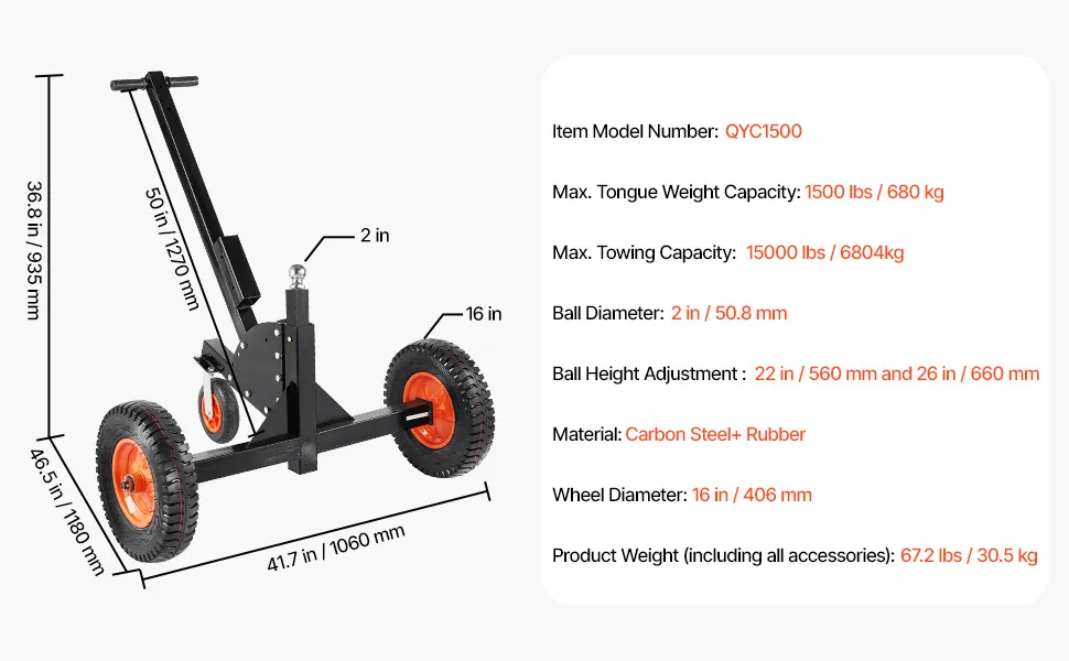 Sfera di aggancio regolabile: puoi regolare gratuitamente l'altezza della sfera di aggancio di 22 e 26 pollici per adattarla a diverse dimensioni di rimorchi. Con una sfera universale da 2 pollici di diametro, puoi collegare il carrello all'attacco dei rimorchi