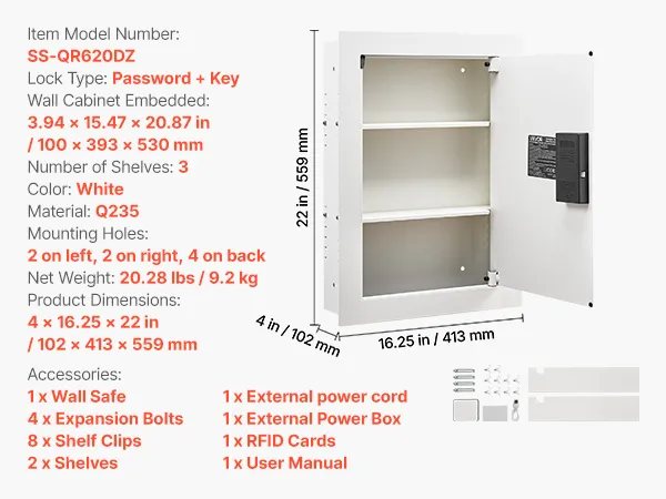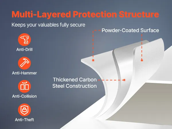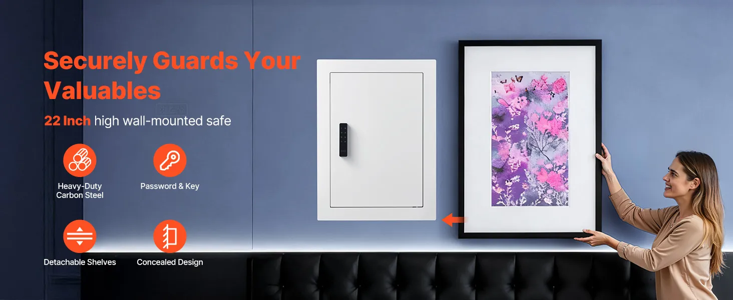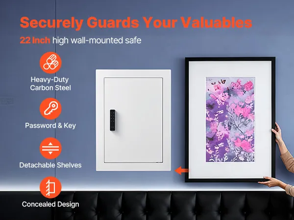 Questa cassaforte a muro, realizzata in acciaio al carbonio spesso, resiste a trapani, martelli e altri urti esterni, proteggendo in modo affidabile i vostri oggetti di valore. La verniciatura a polvere migliora la resistenza alla corrosione e all'usura, garantendo durata e affidabilità.