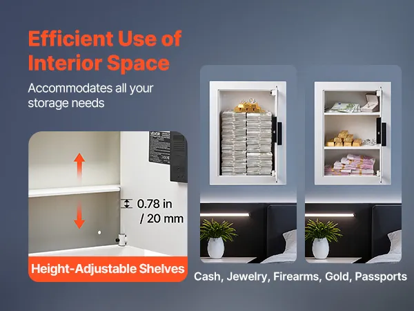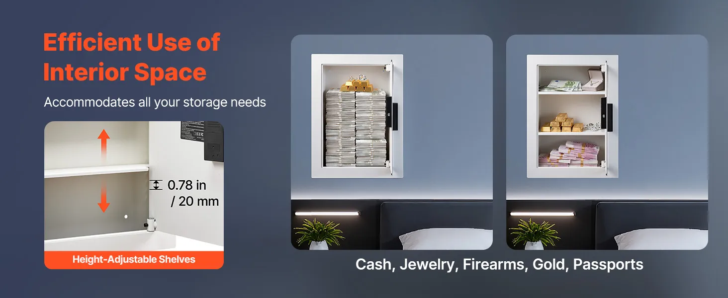 Interno spazioso: questa cassaforte a muro offre ampio spazio per conservare contanti, gioielli, armi da fuoco, oro, passaporti e altri oggetti di valore, garantendo così una protezione sicura e affidabile per tutti i tuoi beni importanti