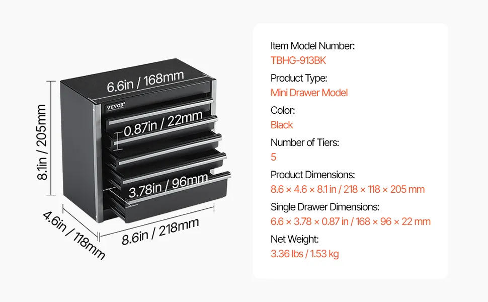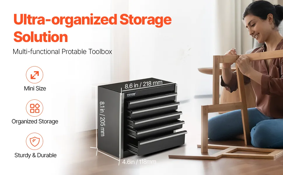 Con 5 cassetti interni, la mini cassetta degli attrezzi in metallo ti aiuta a tenere in ordine diversi oggetti e a mantenere il tuo spazio di lavoro pulito e ordinato.