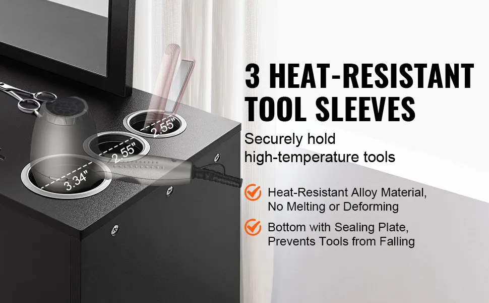 Manicotti per strumenti resistenti al calore: realizzati in materiale in lega resistente al calore, la stazione per parrucchiere fornisce tre manicotti per strumenti termici con un design del coperchio inferiore per evitare che gli strumenti cadano, garantendo sicurezza durante l'uso.