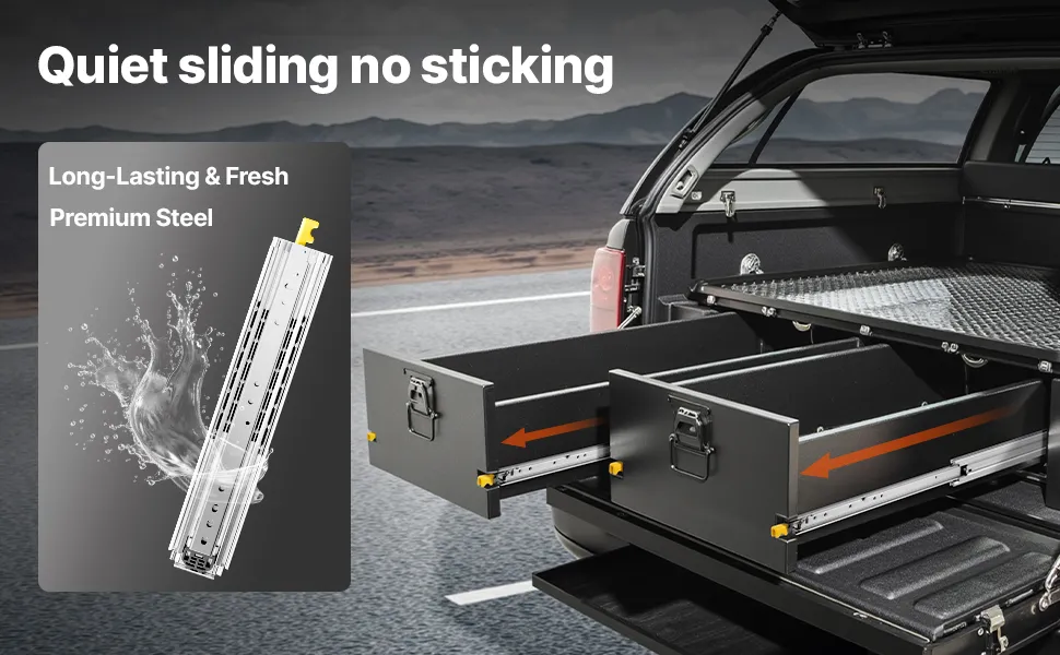 Che tu stia modificando un veicolo ricreativo, un pick-up o un SUV, questa guida scorrevole può gestirlo con facilità. Il design a doppia serratura mantiene il cassetto saldamente in posizione, riducendo il rischio di scivolamento e garantendo un utilizzo sicuro.