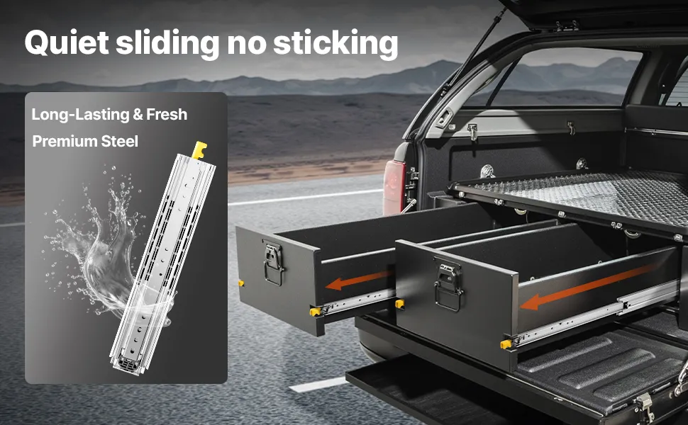 Che tu stia modificando un veicolo ricreativo, un pick-up o un SUV, questa guida scorrevole può gestirlo con facilità. Il design a doppia serratura mantiene il cassetto saldamente in posizione, riducendo il rischio di scivolamento e garantendo un utilizzo sicuro.