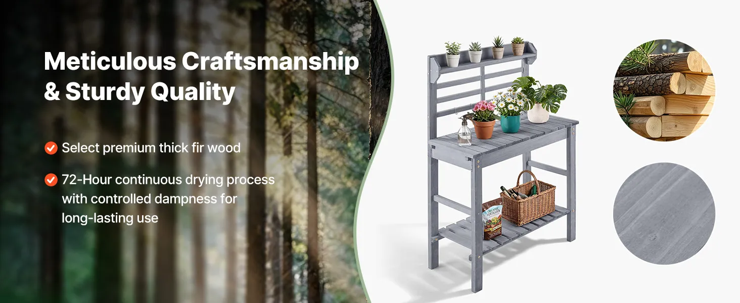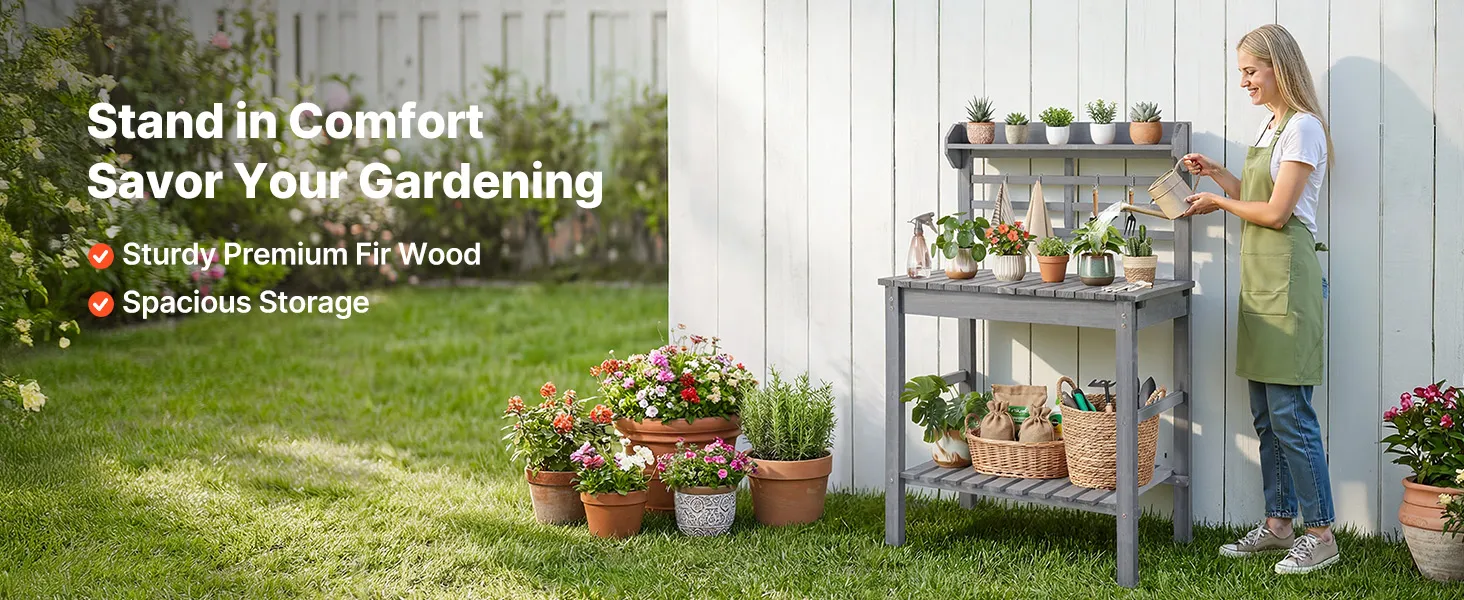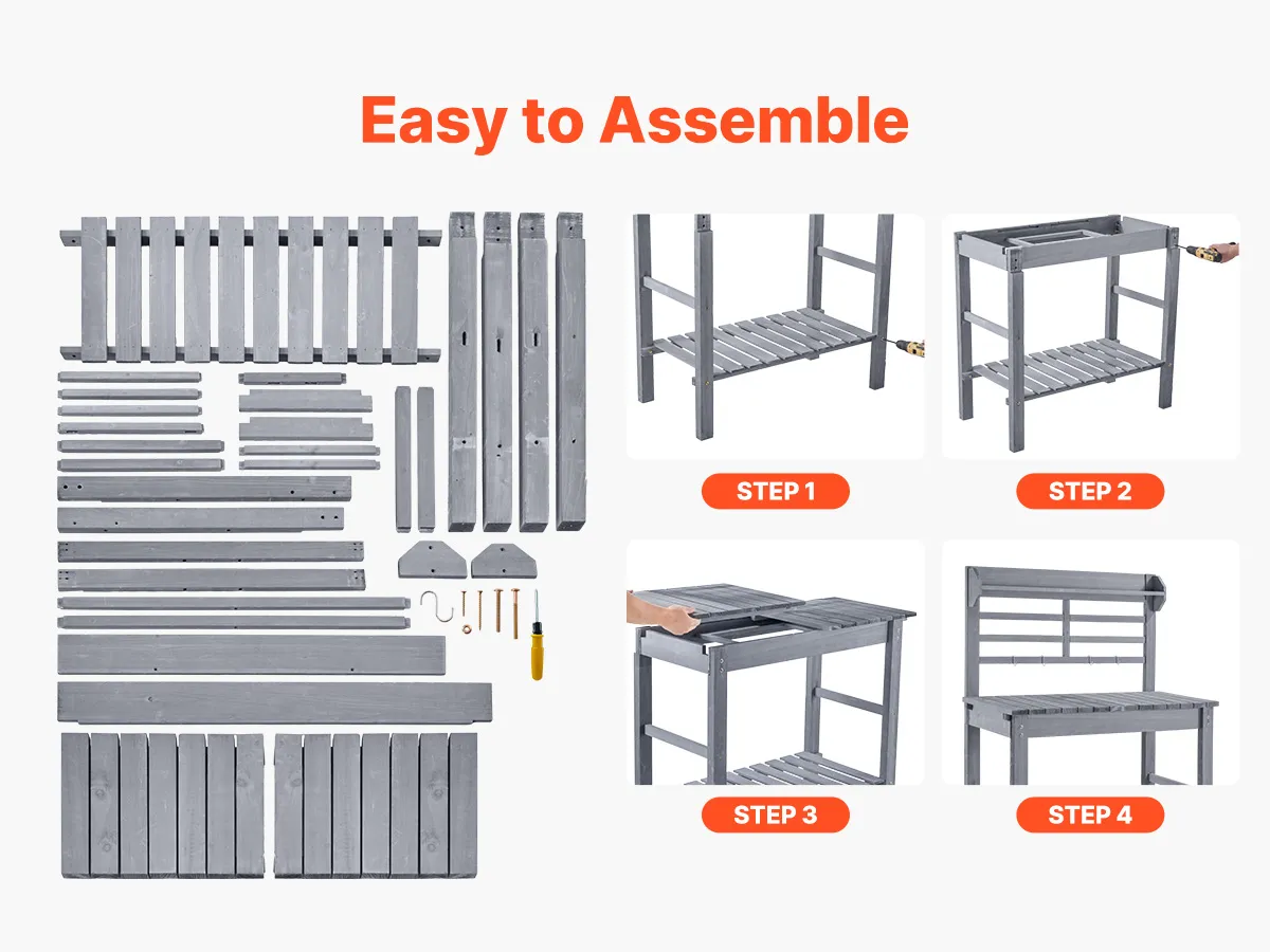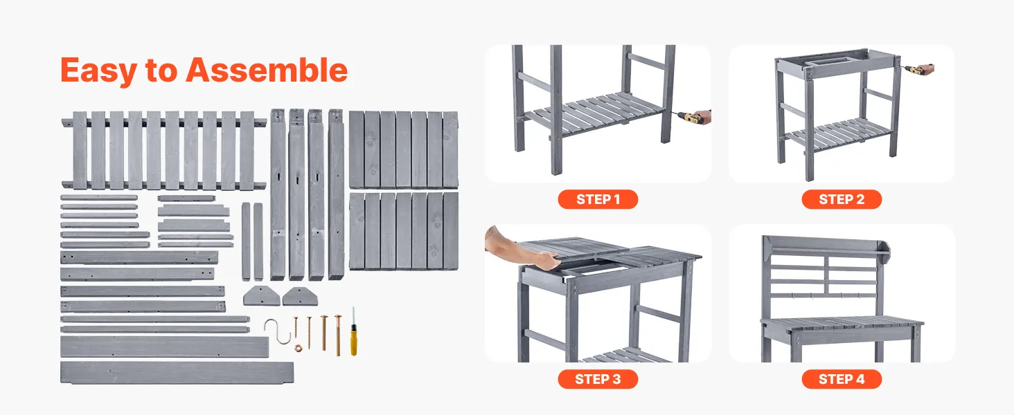 Il nostro tavolo da giardinaggio include un cacciavite e un manuale utente chiaro: basta seguire i passaggi e potrai completare il montaggio in 20-30 minuti.