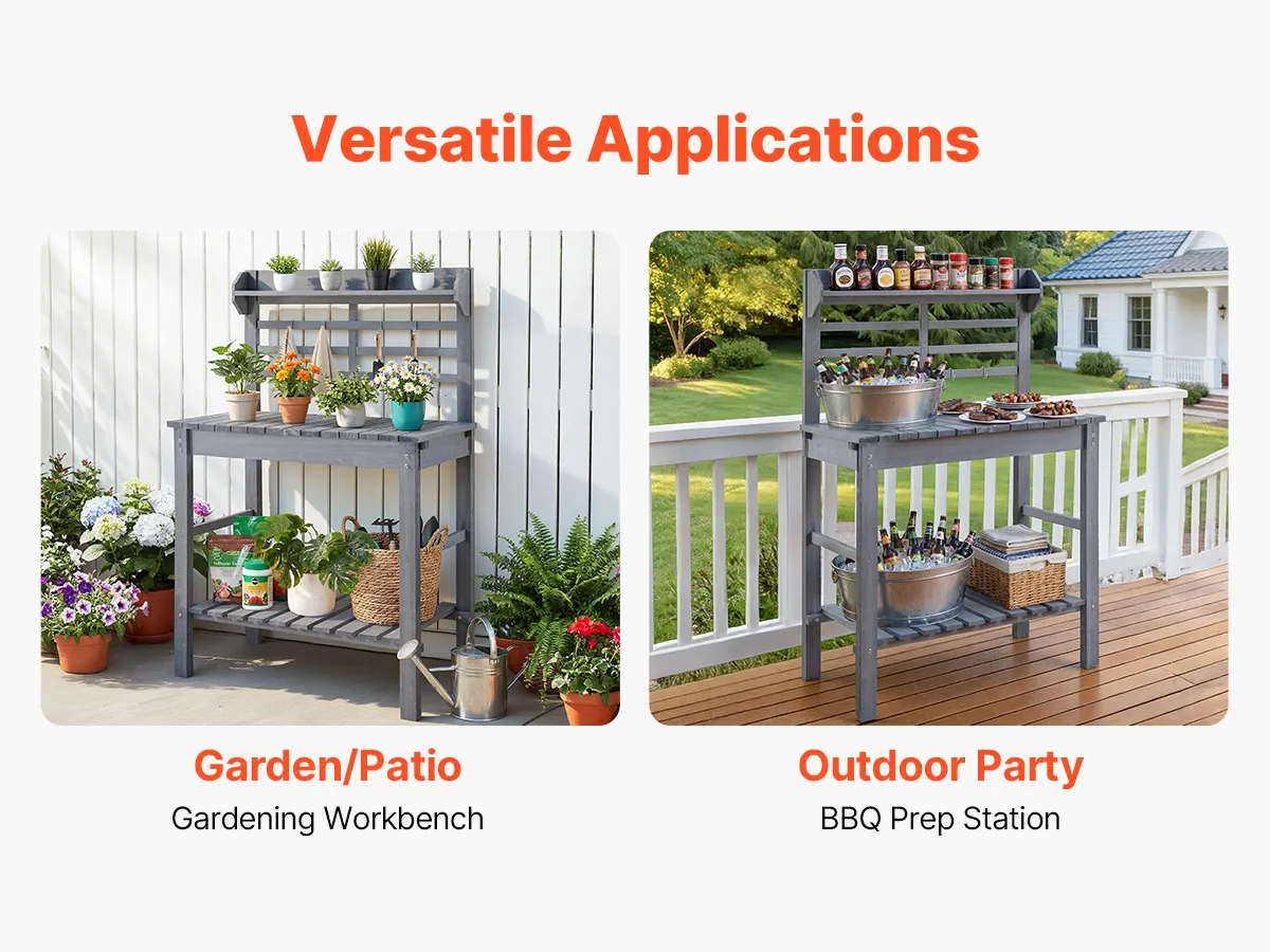 Utilizzo multi-scena: questo tavolo da giardinaggio funziona come postazione di lavoro in giardino o in patio per la cura delle piante e funge anche da stazione di preparazione per barbecue, ideale per mettere in scena ingredienti e bevande