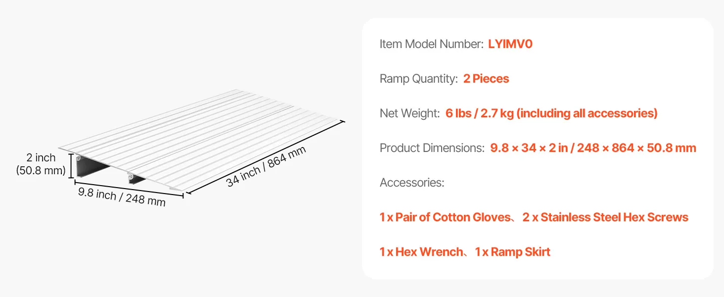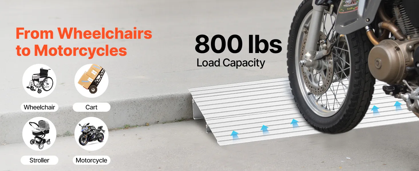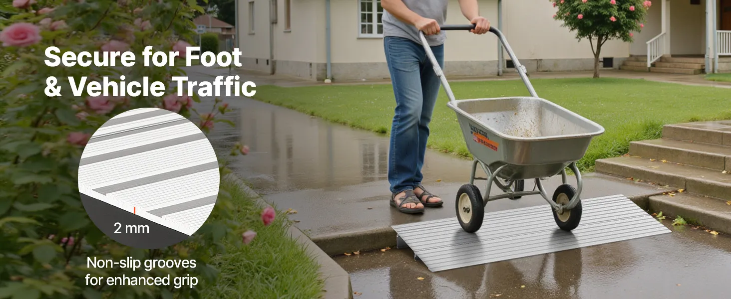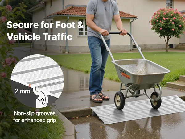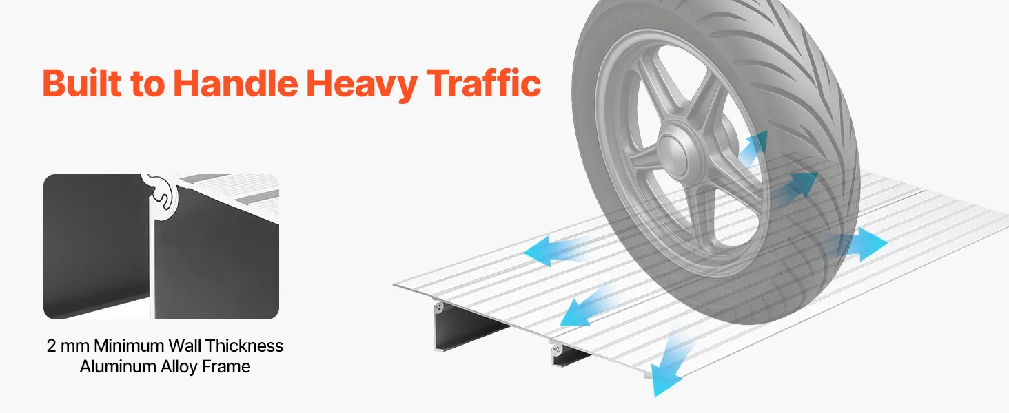 Posiziona la rampa d'ingresso su soglie, rampe di garage o marciapiedi e accedi senza sforzo. Il rialzo di 5,08 cm consentendo alle ruote di scorrere agevolmente senza urtare o incastrarsi.