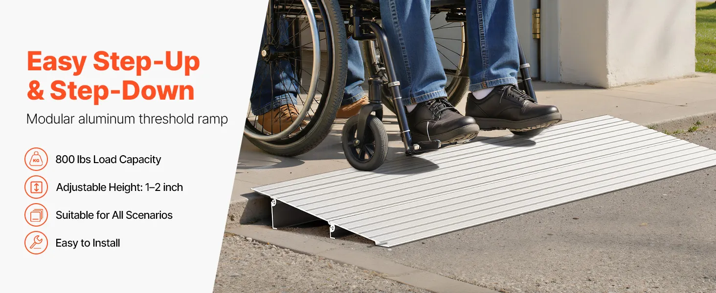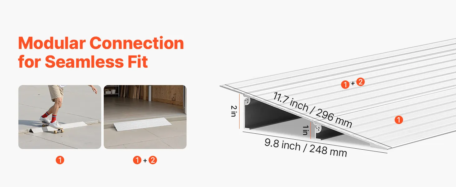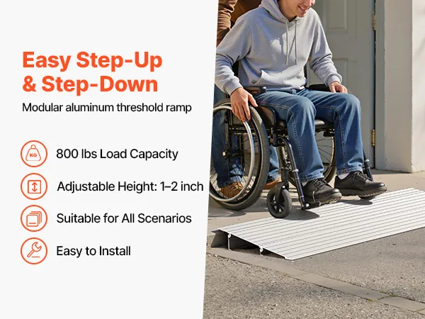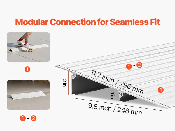 Adattabilità flessibile: questa rampa si adatta a soglie standard da 5,08 cm (2 pollici) e può essere estesa per altre altezze. Niente più ruote bloccate: solo transizioni fluide che facilitano l'accesso quotidiano