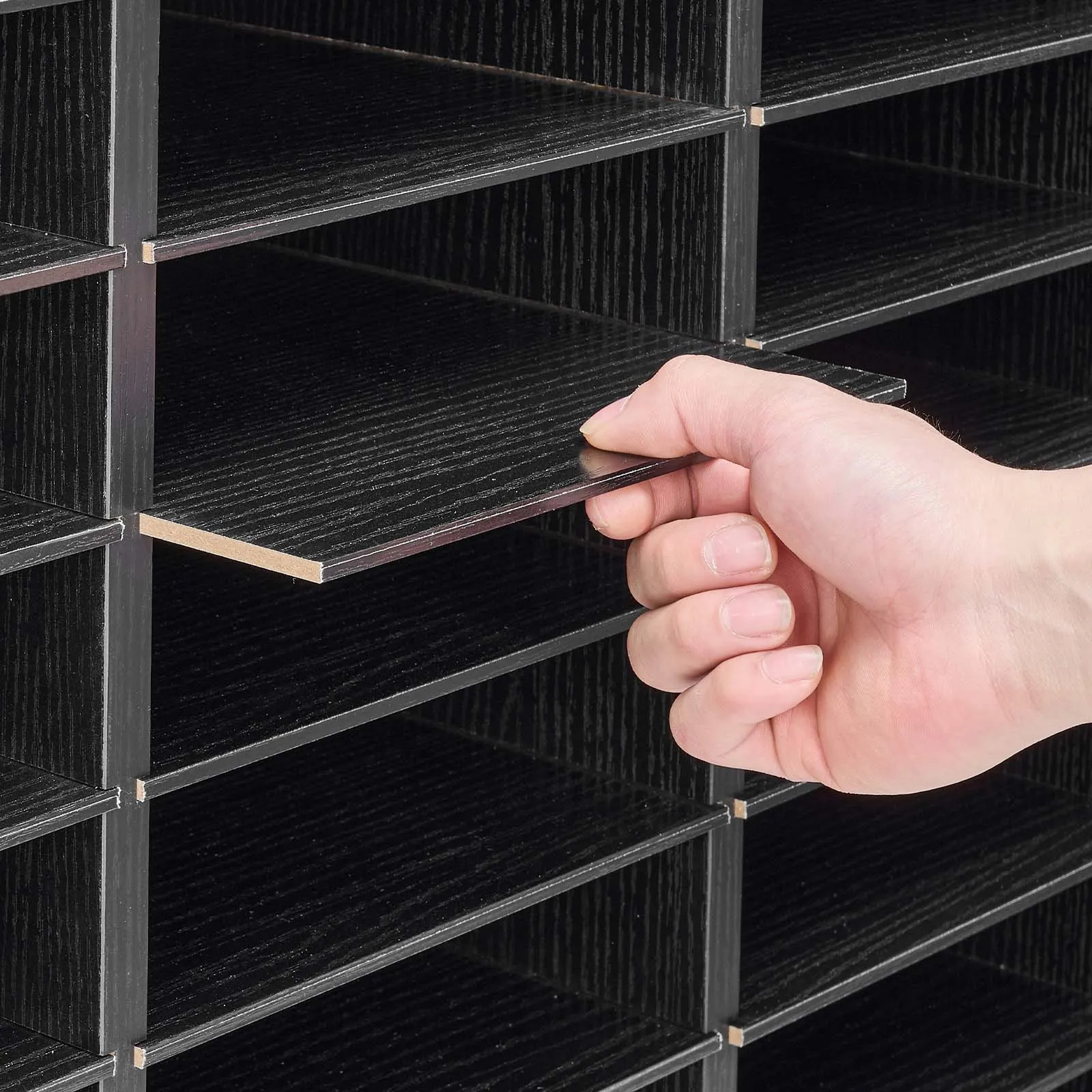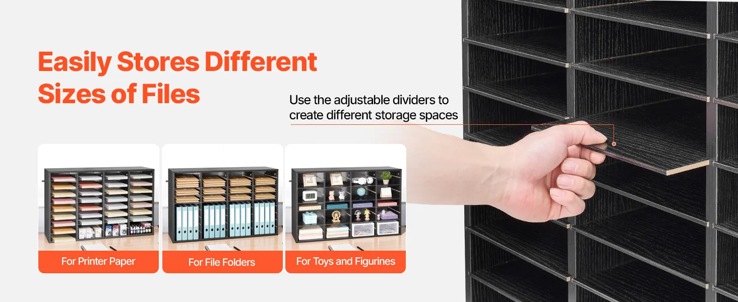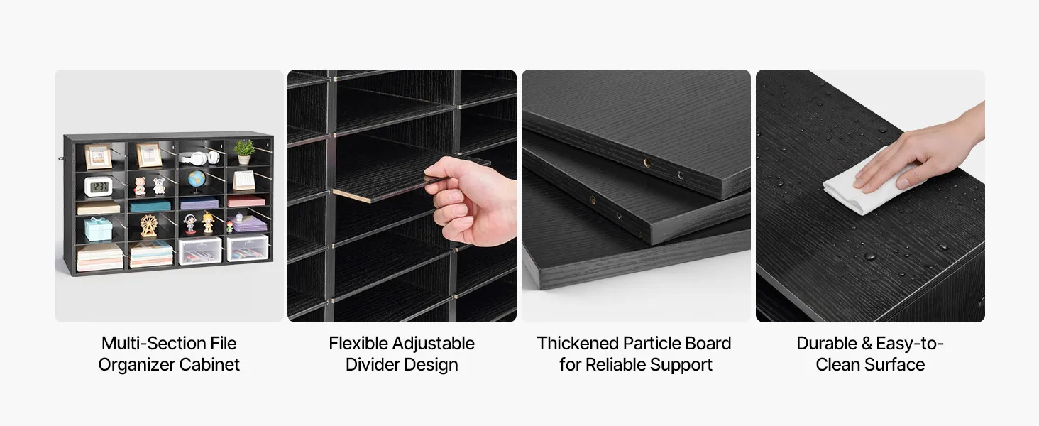 Design flessibile per riporre gli oggetti: Gli scomparti ben dimensionati offrono ampio spazio per documenti, cartelle e raccoglitori. I ripiani rimovibili consentono di avere scomparti più alti per riporre cartelle più grandi quando necessario