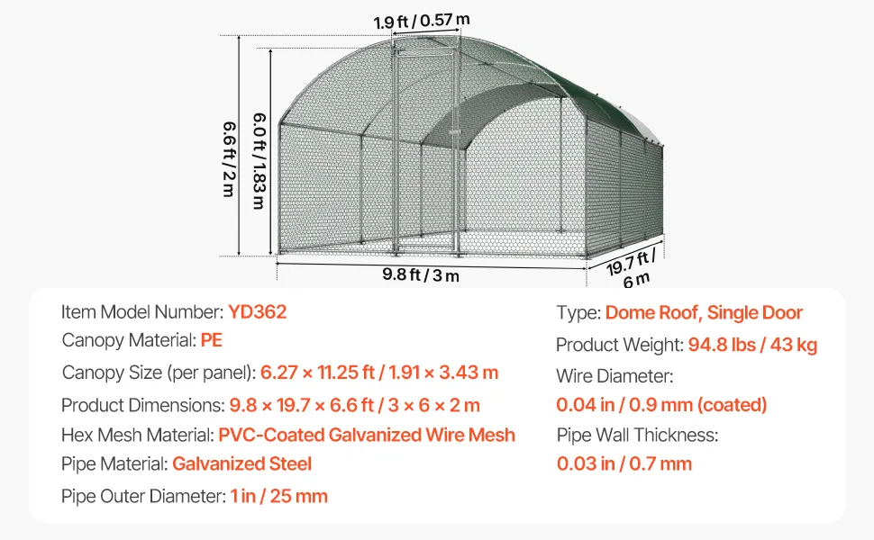 • Ampia zona giorno: questo recinto per polli in metallo con un generoso spazio di 9,8x19,3x6,5 piedi, è dotato di ventilazione su quattro lati, creando un ambiente sano e confortevole