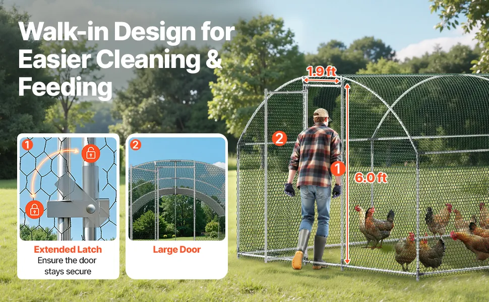 Dotato di ampie porte, il recinto per polli in metallo consente un facile accesso senza doversi chinare. Il design con serratura di sicurezza impedisce al pollame di scappare, rendendo le tue faccende agricole senza problemi.