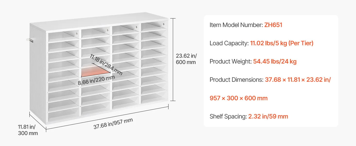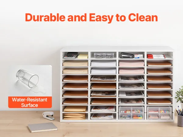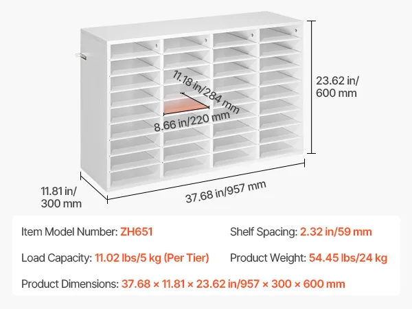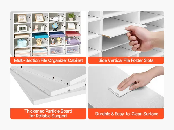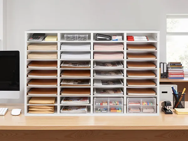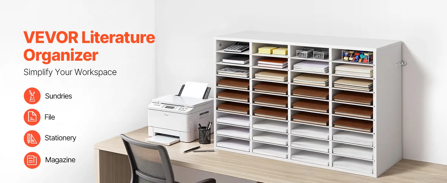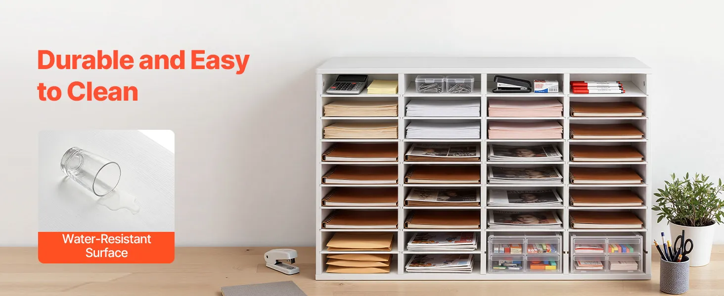 Design flessibile per l'archiviazione: Il vassoio portadocumenti mantiene fascicoli, documenti e moduli organizzati e facilmente accessibili. Ogni scomparto offre ampio spazio, mentre i ripiani rimovibili possono essere regolati per creare scomparti più alti per raccoglitori più grandi