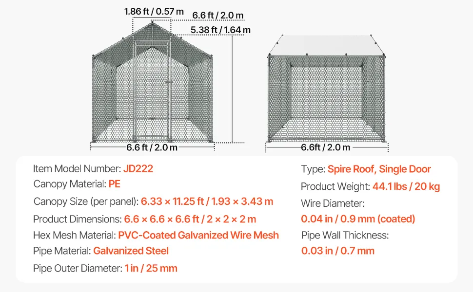 Il nostro pollaio in metallo è fatto di tubi in acciaio zincato, testati contro la nebbia salina per prevenire la ruggine. Offre una casa sicura e accogliente di alta qualità per i tuoi polli, indipendentemente dalla pioggia o dal sole.