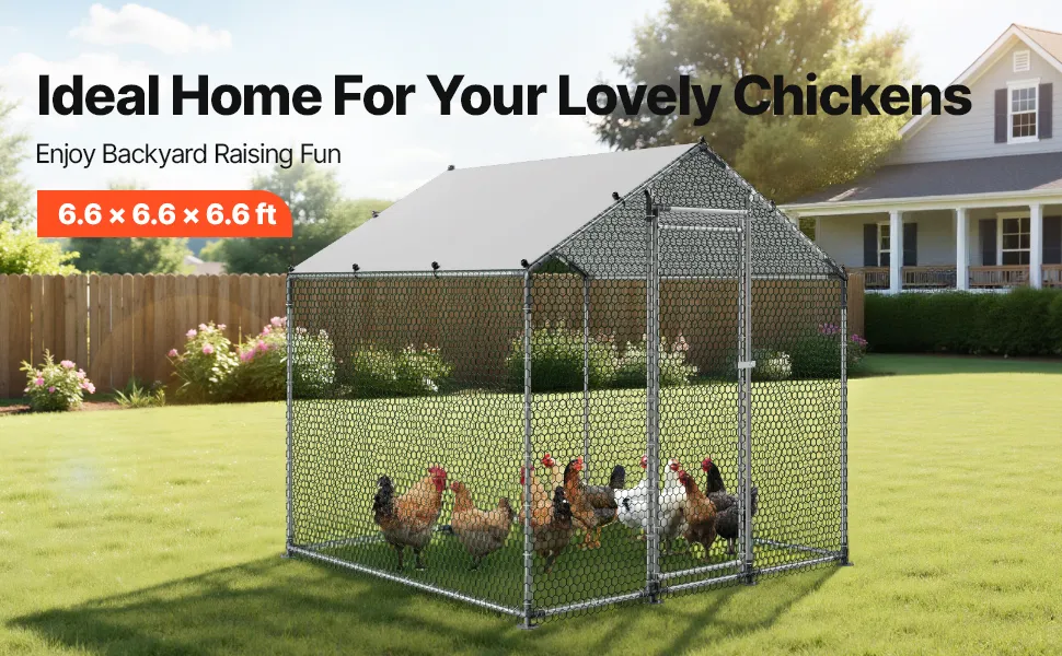 Ampia zona giorno: con un generoso spazio di 6,56x6,56x6,56 piedi/2x2x2 m, questo grande pollaio in metallo è dotato di ventilazione su quattro lati, creando un ambiente sano e confortevole