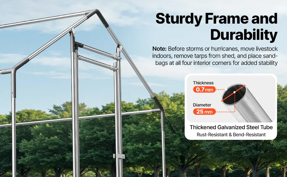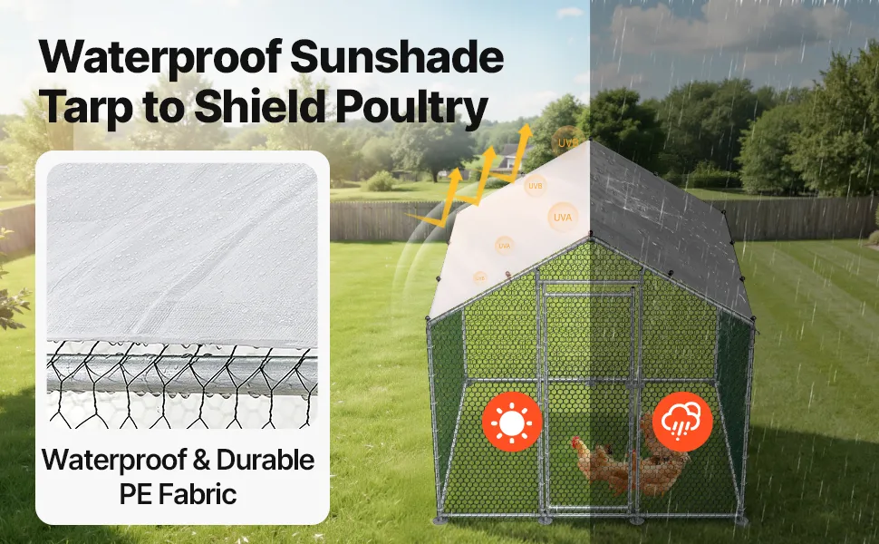Resistente alle intemperie e alla corrosione: realizzato con tubi in acciaio zincato e rigorosamente testato contro la nebbia salina, questo pollaio in metallo resiste a condizioni meteorologiche avverse come pioggia, vento ed esposizione al sole