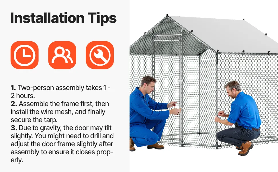 Facile installazione: con accessori facili da usare, l'installazione è un gioco da ragazzi. Puoi rinforzare il pollaio walk-in aggiungendo legno o pietre sul fondo