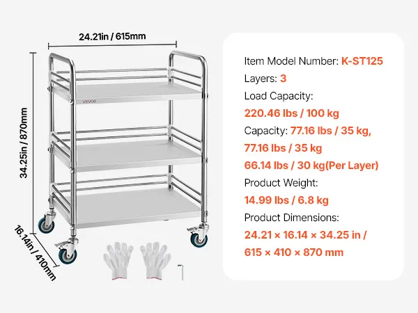 Acciaio inossidabile solido: realizzato in acciaio inossidabile, il carrello multiuso offre resistenza. Supporta fino a 100 kg senza piegarsi. La finitura liscia in acciaio inossidabile semplifica la pulizia e mantiene l'area di lavoro impeccabile