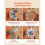 VEVOR Mandrino per Tornio per Legno 100 mm, Mandrino Autocentrante a 4 Griffe per Tornitura del Legno con Adattatore 1 pollici x 8 TPI Accessori con Griffe Valigetta per Trasporto, Acciaio Nichelato