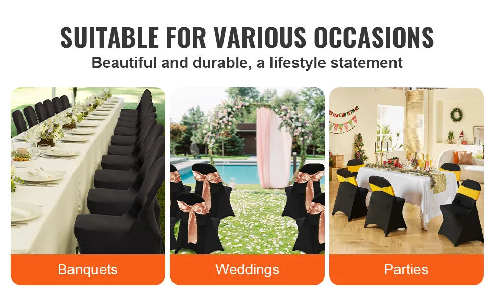 Le fodere per sedie in spandex elasticizzato VEVOR sono realizzate per aggiungere un tocco di raffinatezza a qualsiasi evento. Il loro design elegante e aderente assicura che anche le sedie più semplici si trasformino in eleganti e raffinate opzioni di seduta. Il tessuto in spandex elasticizzato si adatta ai contorni della sedia, eliminando qualsiasi materiale in eccesso per un aspetto impeccabile. Che tu stia pianificando un matrimonio, un banchetto o una celebrazione speciale, queste fodere aiutano a creare un'atmosfera di raffinatezza. La capacità delle fodere per sedie di migliorare l'arredamento e fornire un aspetto raffinato le rende un'aggiunta perfetta per qualsiasi evento, assicurando che i tuoi ospiti siano colpiti dal momento in cui arrivano.