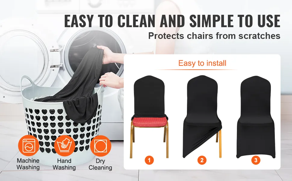 Queste fodere protettive lavabili e rimovibili sono progettate per una facile manutenzione, il che le rende la scelta perfetta per gli organizzatori di eventi indaffarati. Dopo ogni evento, basta rimuoverle e gettarle in lavatrice per una pulizia senza problemi. Il tessuto in spandex assicura che le fodere mantengano la loro forma e il loro colore, anche dopo numerosi lavaggi. Ciò è particolarmente utile per gli ospiti frequenti o per coloro che gestiscono diversi eventi all'anno. Le fodere si asciugano rapidamente, semplificando ulteriormente il processo post-evento. Non è necessario stirarle e il materiale durevole mantiene la sua qualità nel tempo, assicurando che queste fodere rimangano una soluzione conveniente e duratura per ogni occasione.
