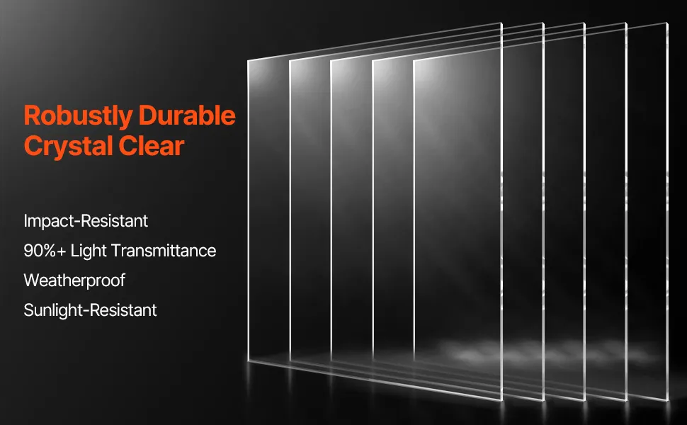 Chiarezza superiore: goditi una trasparenza senza pari con i nostri pannelli in PET, che superano il vetro HD standard con oltre il 90% di trasmissione della luce. La superficie cristallina è priva di foschia, appannamento o graffi, ideale per insegne espositive e artigianato di alta qualità