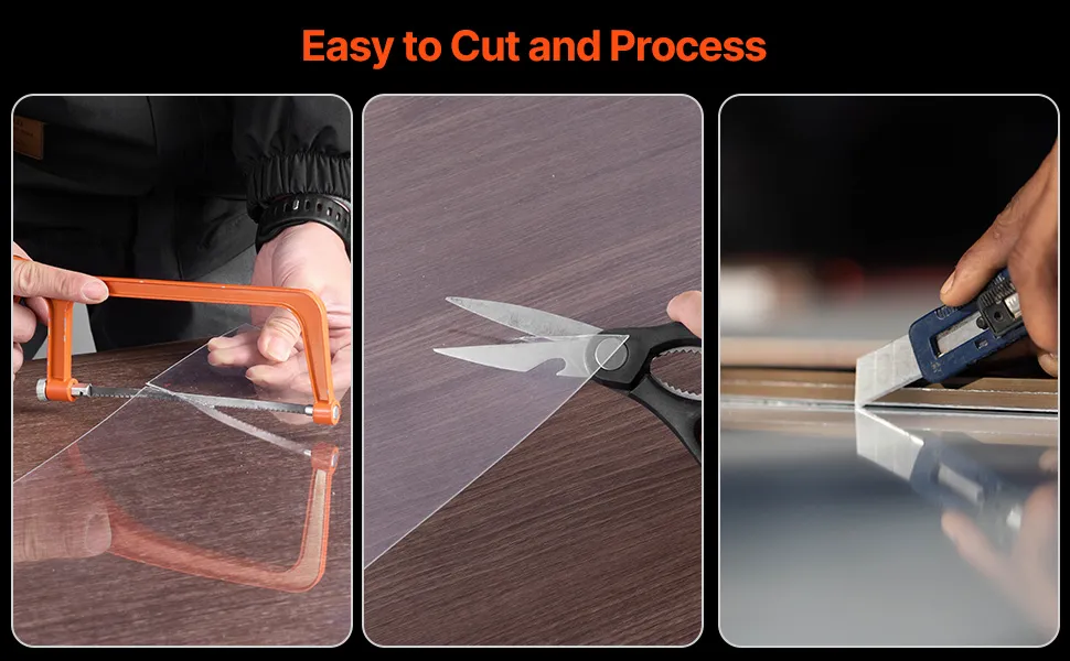 Puoi tagliare, forare o piegare facilmente queste lastre di vetro PET utilizzando i tuoi strumenti preferiti per ottenere esattamente la dimensione o la forma che desideri, senza causare crepe o bruciature.