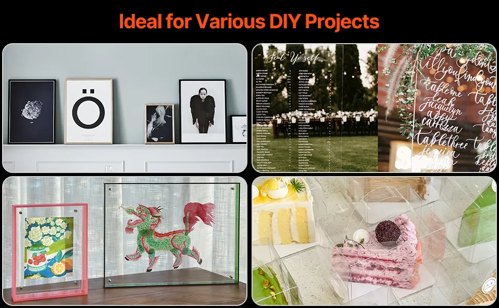 Utilizza questi fogli di plastica flessibile PET per creare cartelli espositivi, creazioni fai da te, scatole regalo, splendide opere d'arte fatte a mano e persino sostituire il vetro rotto di una cornice per foto per una soluzione più sicura e senza preoccupazioni.