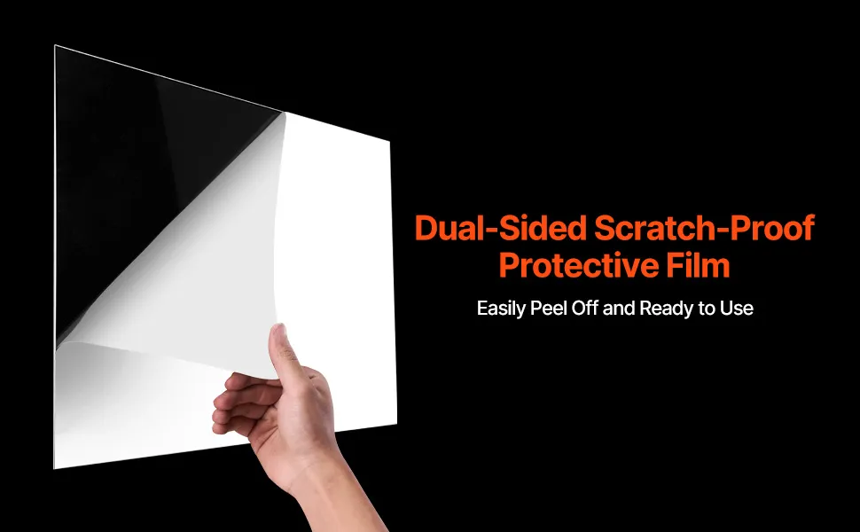 Questi fogli di plastica sottile in PET offrono elevata resistenza e sono antiurto, rendendoli difficili da rompere. Entrambi i lati sono dotati di pellicole protettive che devono essere rimosse prima dell'uso, garantendo un'eccellente trasparenza ad alta definizione.