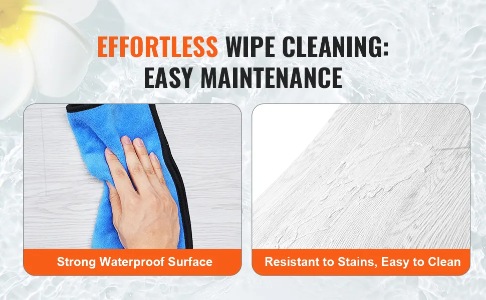 Impermeabile e facile da pulire: la superficie del materiale è impermeabile, resistente alle macchie e facile da pulire con un semplice panno, rendendo la manutenzione senza problemi. Suggerimenti per l'installazione: 1. Mantenere la superficie del pavimento pulita e priva di altre impurità. 2. Assicurarsi che sia le piastrelle del pavimento staccabili che la superficie di installazione siano asciutte.