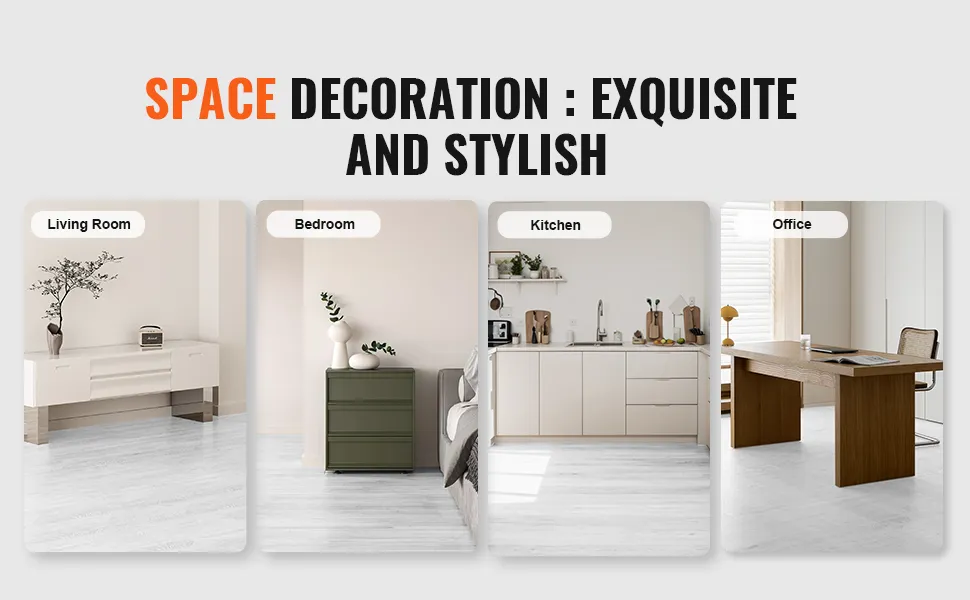 Questo pavimento in vinile per cucina può essere utilizzato in molti spazi. Puoi installarlo in cucine, sale da pranzo e camere da letto. Sono anche ottimi per bagni e uffici. La loro caratteristica impermeabile li rende ideali per le aree umide. Poiché sono durevoli, funzionano bene anche in aree ad alto traffico. Quindi, puoi usarli ovunque nella tua casa. Questo lo rende una scelta versatile. Offrono una soluzione multifunzionale per l'arredamento della casa. Puoi trovare l'abbinamento perfetto per qualsiasi spazio.
