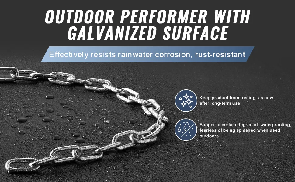 Ideale per avventure all'aperto: questa catena a spirale zincata non funziona solo all'interno, è resistente agli schizzi e pronta per l'esterno. Che si tratti di tirare tronchi, appendere luci, fissare vestiti o anche tenere al sicuro il tuo cane.