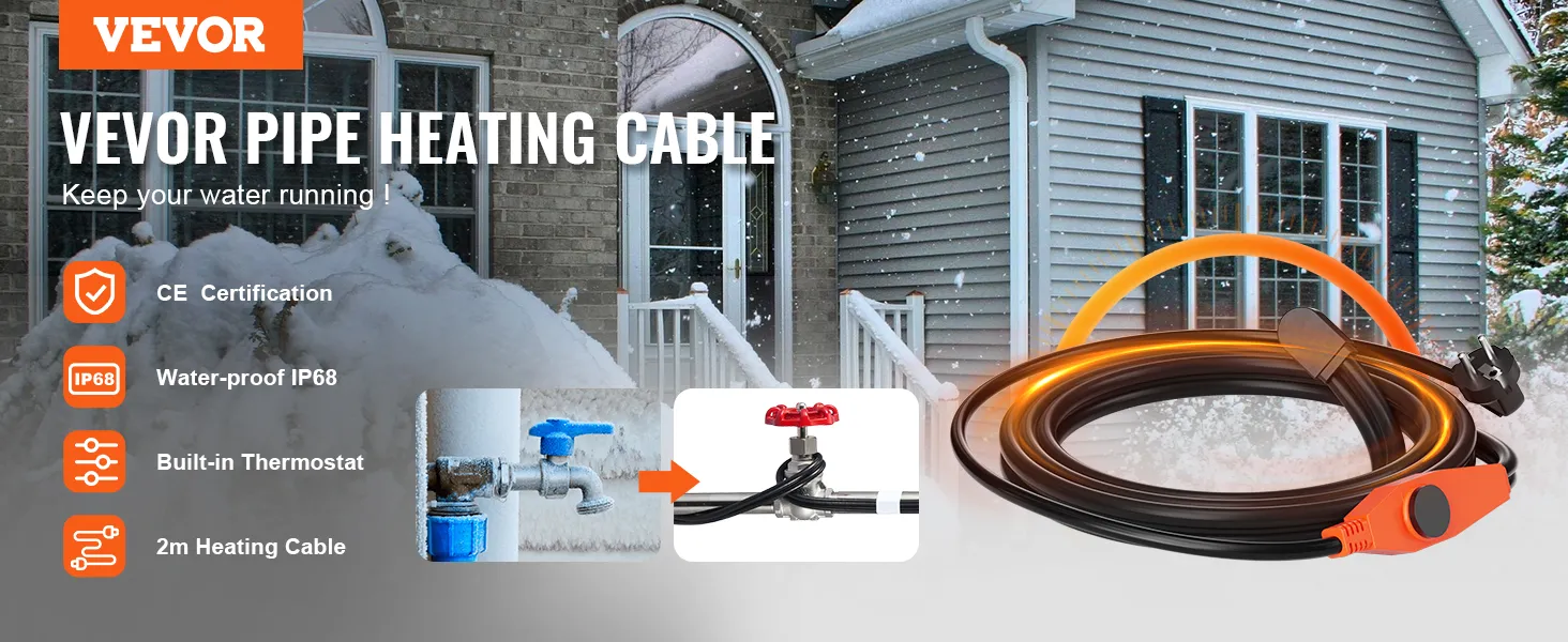 Batti l'inverno: il nostro cavo scaldante per tubi è progettato per proteggere i tuoi tubi dal congelamento quando fa freddo, assicurando un flusso d'acqua regolare per tutto l'inverno. Un aiuto in camper, scantinati, garage, giardini, serbatoi d'acqua, idranti esterni, valvole per tubi, rubinetti, ecc.