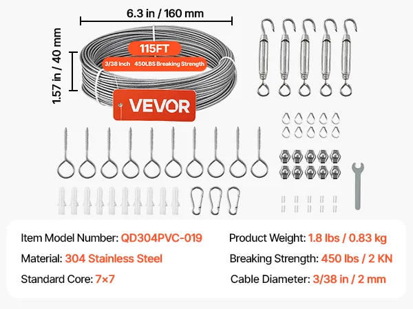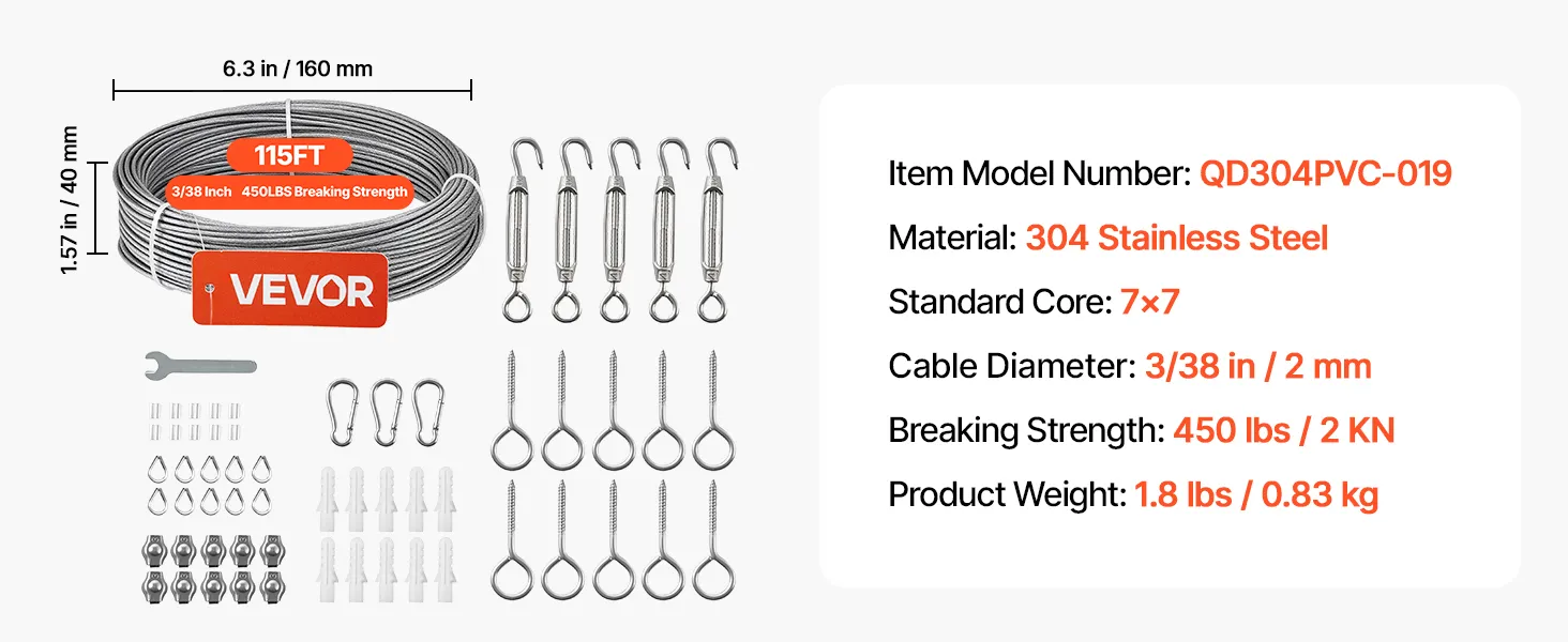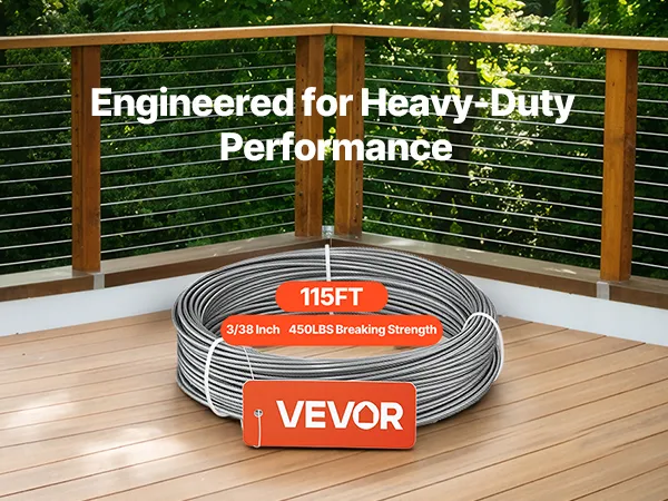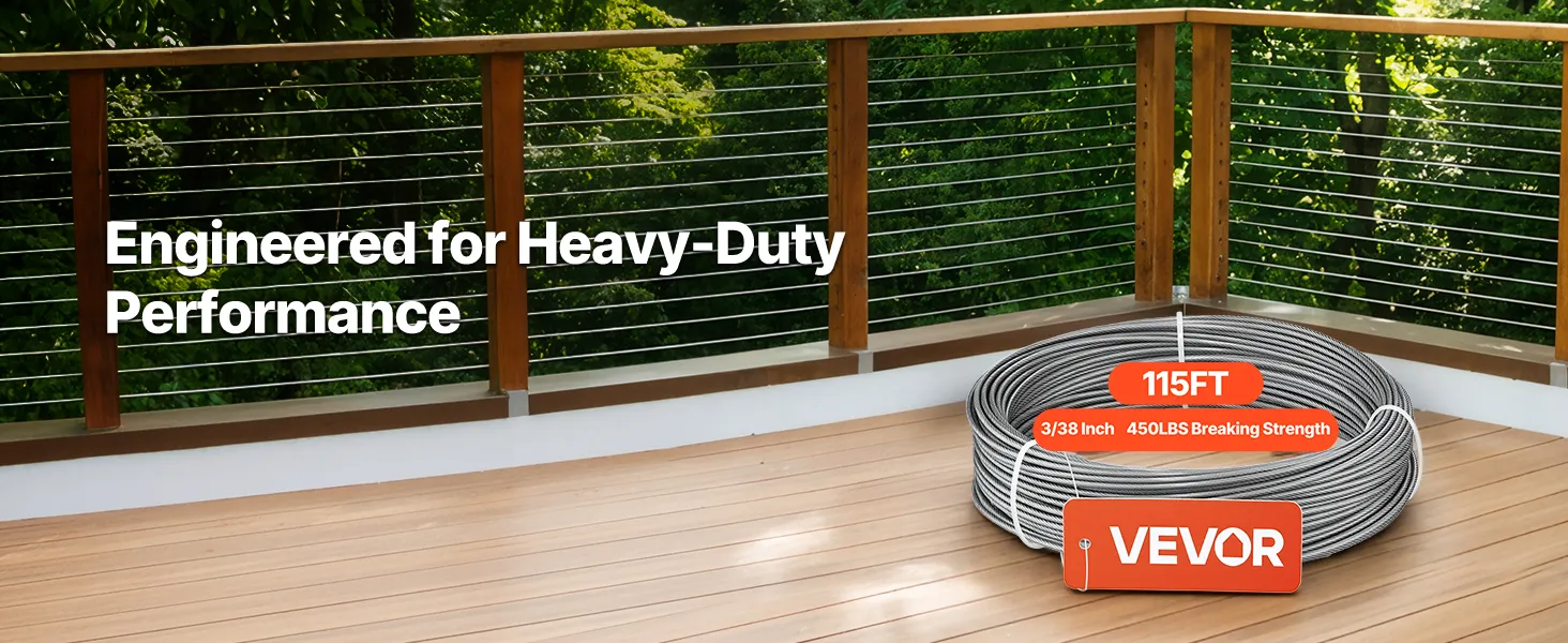 Cavo da 3/38 di pollice x 115 piedi: questo cavo in acciaio rimane flessibile con solide prestazioni di trazione. Puoi instradare facilmente corrimano per scale e percorsi fai da te, quindi tagliare e crimpare per una finitura pulita