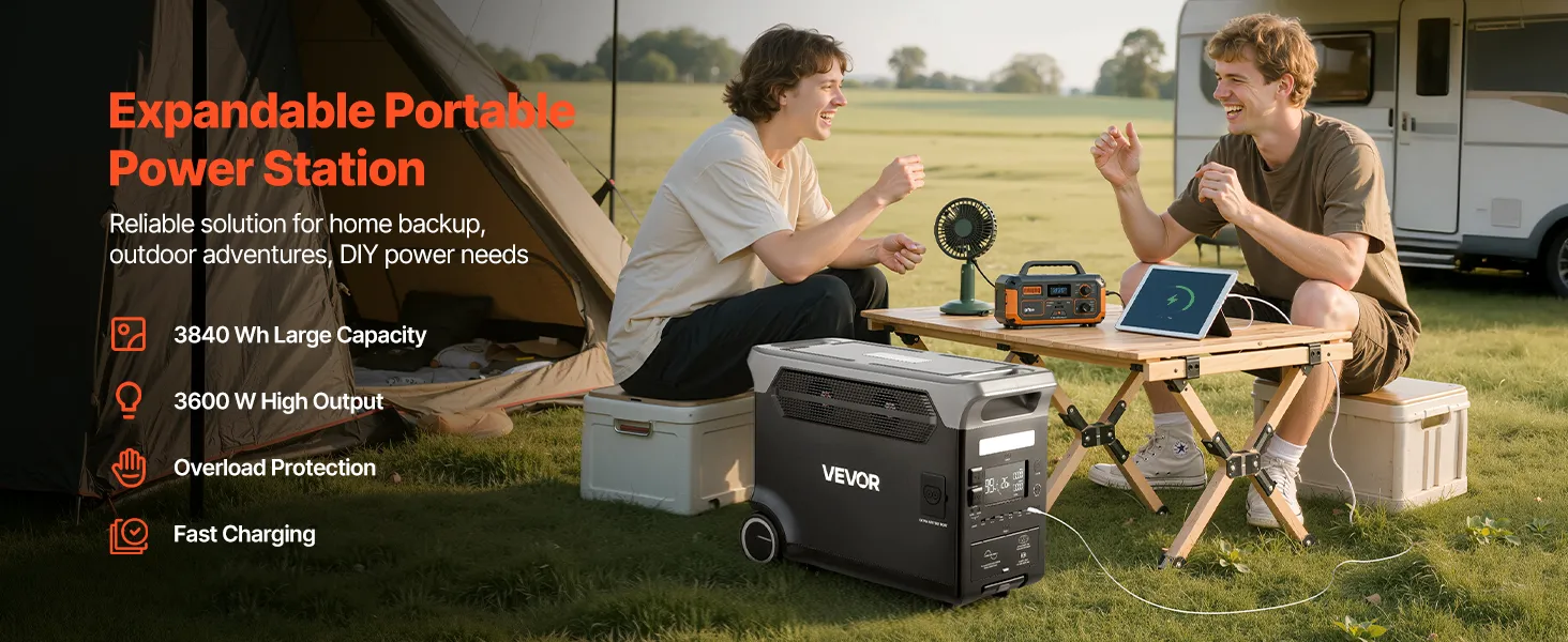 La centrale elettrica portatile VEVOR da 3600 W è la soluzione di alimentazione affidabile per i tuoi spostamenti. Con 10 porte di uscita, una batteria LiFePO₄ ad alta capacità da 3840 Wh, capacità espandibile e opzioni di ricarica versatili, fornisce energia continua e affidabile.