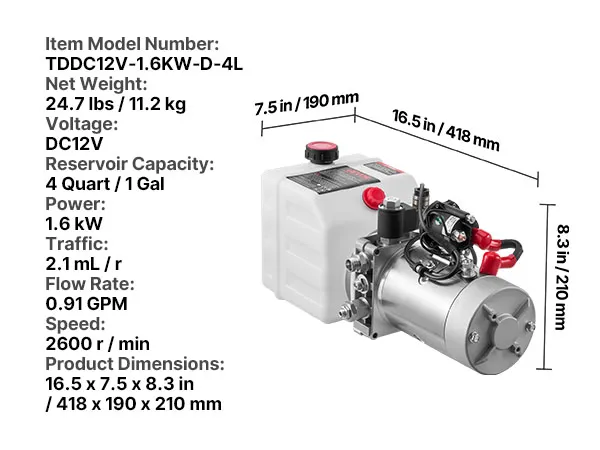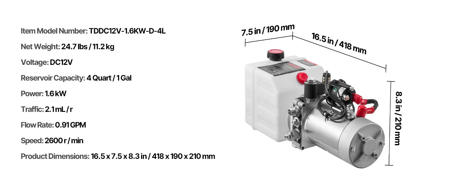 Questa pompa idraulica per rimorchi ribaltabili aiuta meccanici professionisti e officine a gestire rapidamente i lavori. Supporta rimorchi ribaltabili, carrelli elevatori, piattaforme elevatrici, piattaforme elevatrici, attrezzature per la movimentazione dei materiali.