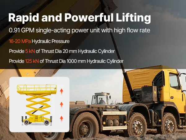 Questa unità di potenza idraulica utilizza un motore da 1,6 kW a 2.600 giri/min per erogare una pressione di esercizio di 16-20 MPa e fino a 22 MPa (3.200 psi). Garantisce un sollevamento sicuro e ad alte prestazioni, con una potenza costante per lavori impegnativi.
