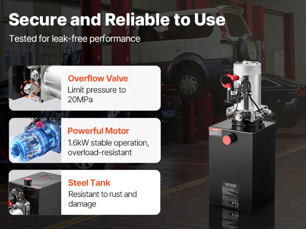Robusta e affidabile: questa pompa idraulica per rimorchi ribaltabili sigilla ermeticamente per resistere alle perdite e il serbatoio in acciaio antiruggine resiste agli urti quotidiani