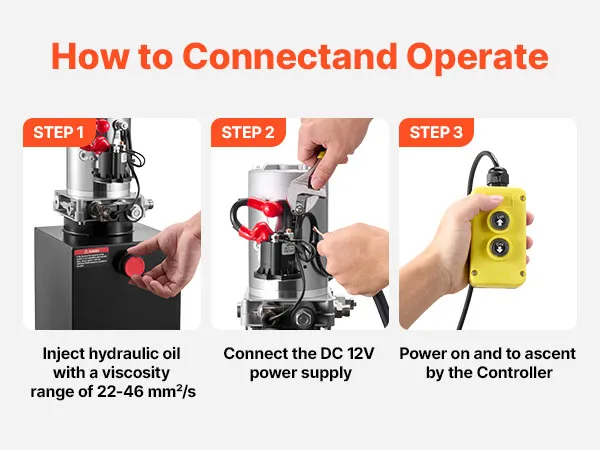 Facile da installare: questa pompa per rimorchio ribaltabile arriva preassemblata. Basta aggiungere l'olio idraulico, collegare i cavi di alimentazione e i tubi flessibili e il gioco è fatto
